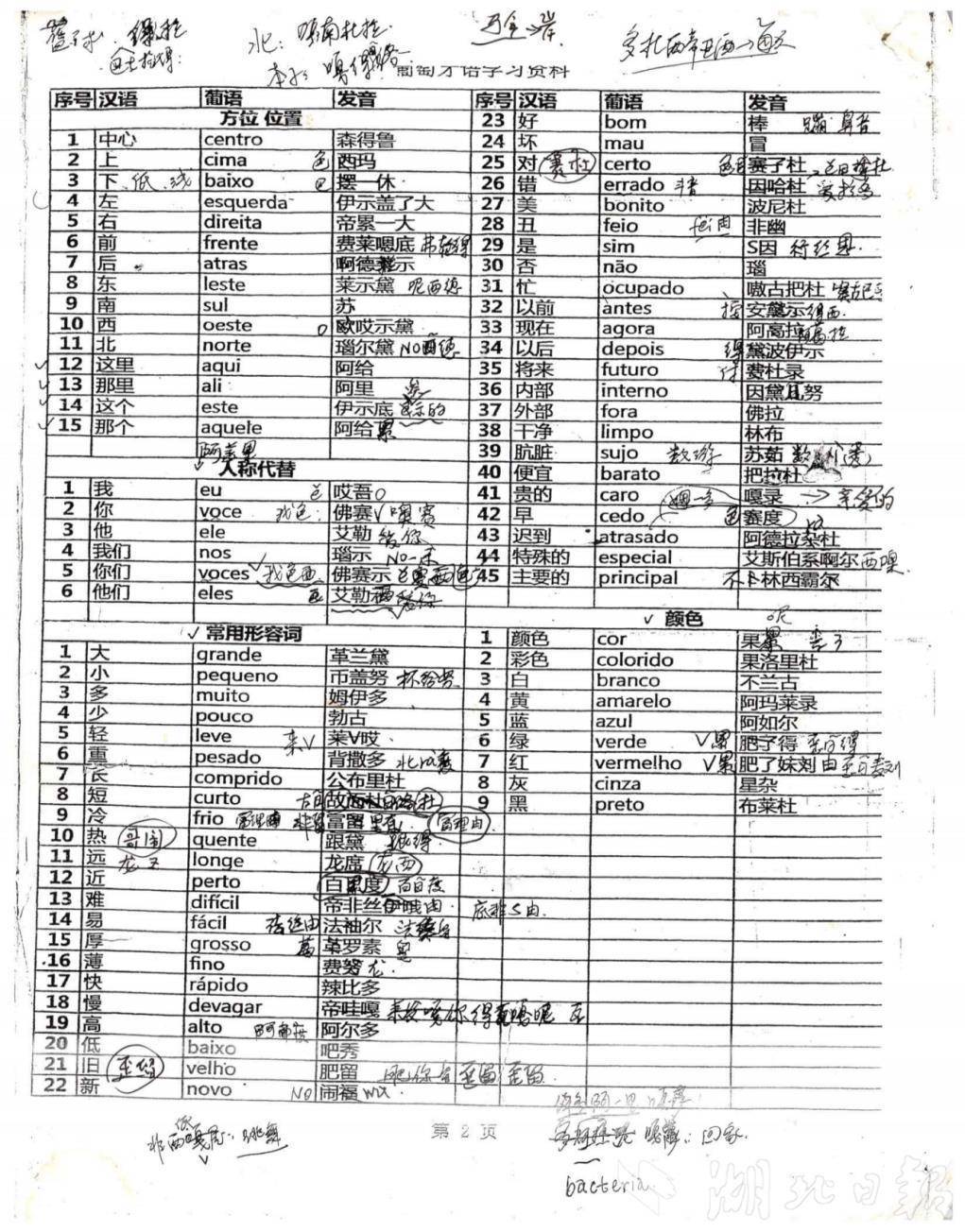 他在身上揣着一个小簿子,每次遇到不懂的,就向当地工东谈主请问,并慎重纪录并标注。每晚睡前,他都会记忆本日所学的单词和句子。