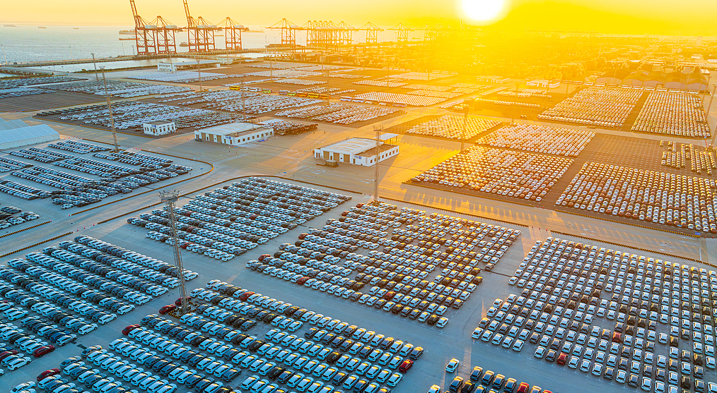 2024年11月8日,苏州太仓港,数千辆国家具牌汽车整皆陈列于船埠,行将出口外洋。图源:视觉中国