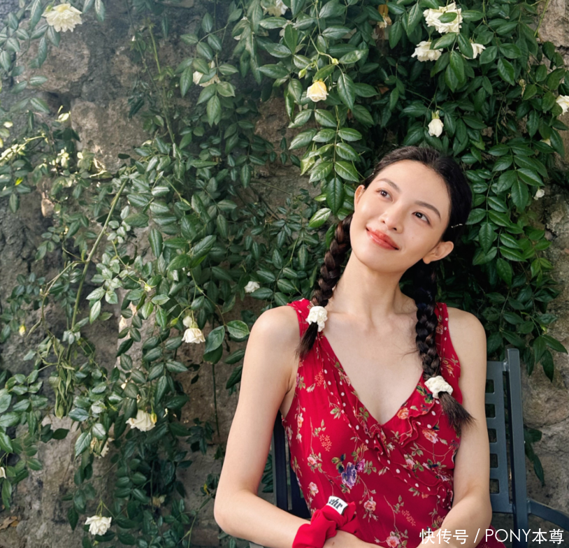 钟楚曦的双麻花辫发型,突显颈部线条,与 V 领策画造成谐和的视觉节律。妆容上,她粗略率遴荐了淡妆加握,翔实的红唇与裙身的红色稍作呼应,既提亮气色,又不会抢了裙子的风头,让举座造型恒久围绕 “红色碎花” 这一中枢张开。