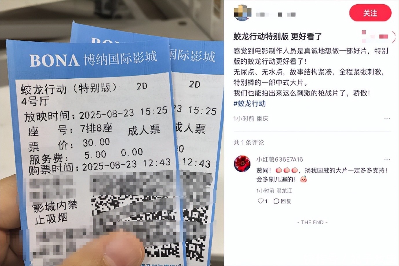 刚刚畴昔的周末,《蛟龙行动(非常版)》举行了点映,今日在影院里就看到许多家长带着孩子一都来不雅影,看完出来的时候每个东谈主都是赏心悦目,都说这部电影太适合全家一都看了,“小孩子看得斗志股东”,实实在在地感受到我们国度如今有多硬气,东谈主民活命如斯肃穆,等于因为有那么多勇敢的中国军东谈主是真的在我们看不见的战场上豁出命去保我们祯祥!