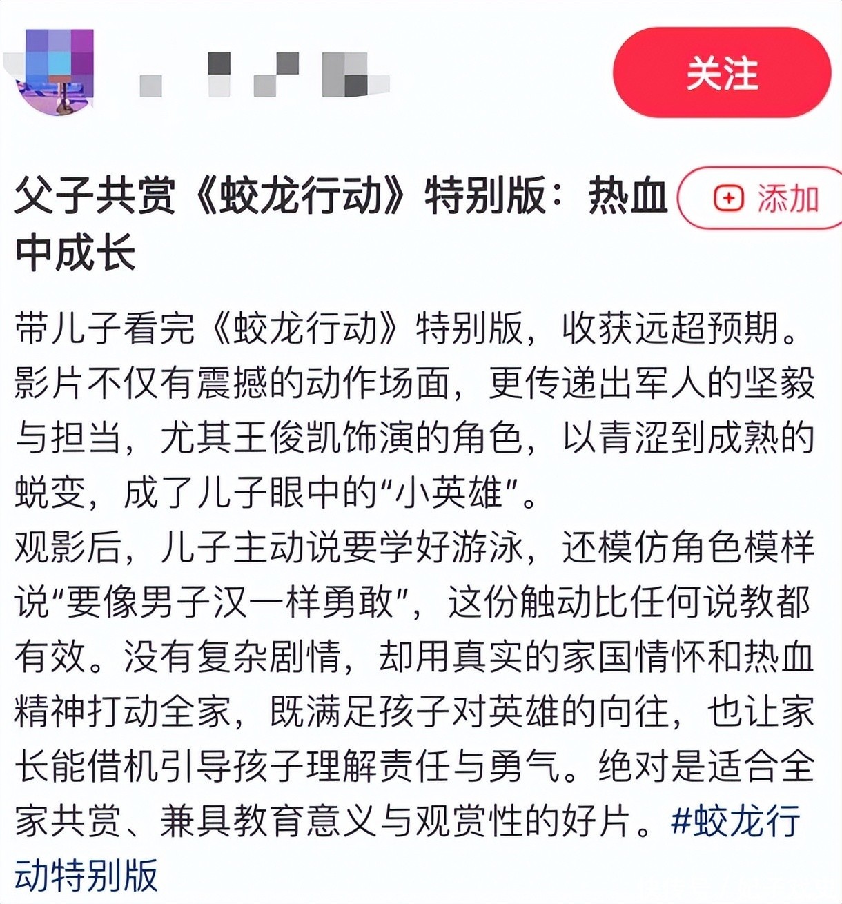 看完电影出来一直到家,我家崽这个小嘴就没停过,全程一直在回忆剧情,说到股东的时候一边比齐整边给扫数东谈主讲:“你们知谈吗?潜艇里的老大哥们跟蛟龙小队通话,然后全球就一都去干戈了!中国的军东谈主最强横!”好家伙,这国防教养是作念到位了,无需任何说教,娃我方就悟了——中国装备牛气!中国军东谈主配互助战更牛气!