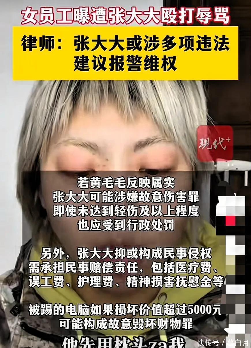 要是说秦岚、刘涛的争议还带着"无心之失"的辩解,张大大被前助理实名举报的事件,则号称文娱圈职场霸凌的典型。前助理"黄毛毛"通过外交平台发布长文+音视频凭据,详确揭露了我方的遭受:仅因修改剧本细节,便遭到张大大长达2小时的曲直与殴打,过后还被免强90度鞠躬反复谈歉,况兼被恫吓"我的话即是圣旨"。更令东谈主发指的是,她提倡辞职后,遭到张大大团队雇东谈主上门烦闷、禁止解约,导致永久堕入精神火暴。该事件曝光后,#张大大 德不配位# 话题阅读量破10亿,网友斥责声浪绵绵不绝。