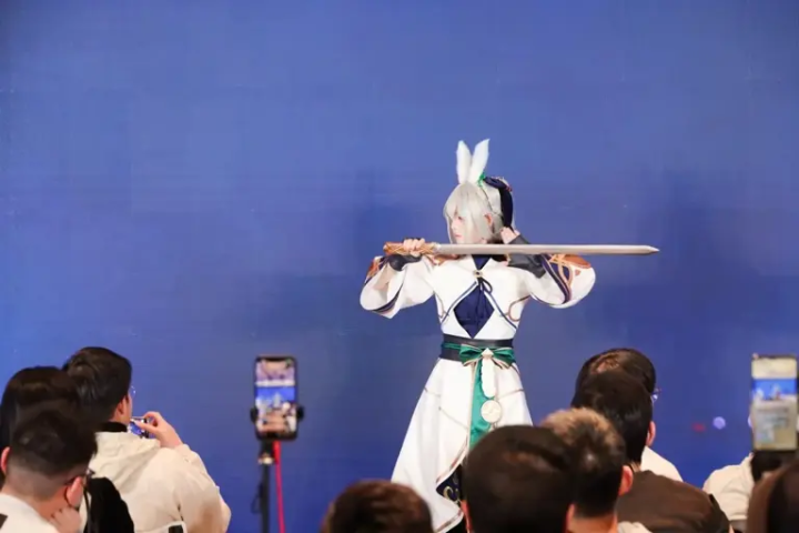 发布会还邀请了专科coser们到达现场,规复诸多游戏经典形象。东谈主气主播火线妹以莲的 cos造型惊艳现身,让凭空变装破壁而来,遽然将现场脑怒推向上升。每位到场玩家齐领到了 “水月生莲谷子套装” 相近等好礼。