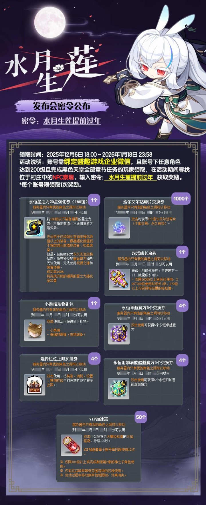 为助力玩家快速上手新劳动莲,官方大幅镌汰了养成门槛。现时登录的玩家均可领取18星券、变装卡等重磅奖励,输入专属密令“水月生莲提前过年”,还能畸形兑换突出成长秘药、VIP加快器、不灭不凡魔方等实用谈具,为成长之路添砖加瓦。