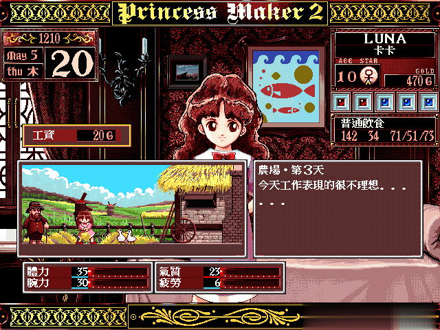 游戏的干线很粗浅:玩家算作别称勇者,在打败魔王赢得和平之后,收养了别称来自异界的孩子,玩家算作父亲,需要养育男儿8年。在这时间,玩家不错选用稠密不同的学校对男儿进行培养,还不错安排她去不同的场所打工挣钱。男儿何如成长,并最终成为什么样的东谈主物,赢得什么样的结局,取决于玩家何如去安排男儿的平日行程。游戏有多种结局,最佳的结局便是将男儿嫁给王子,成为王国的公主。