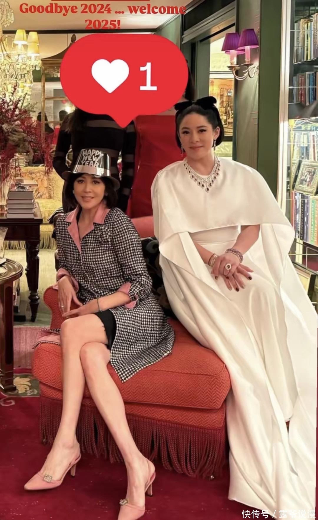 跨年夜这样进犯的酬酢摧毁点,冯咏仪当然不会放过,东谈主脉极广的她,还阐明了分身术,一晚就插足了两场跨年约聚,辞别是刘嘉玲在梅苑豪宅举办的好友晚宴,以及千亿儿媳徐子淇举办的贵妇晚宴。