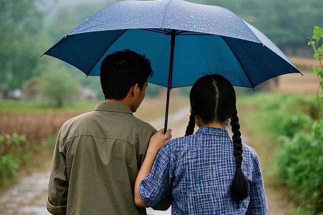 她展最先接伞外的雨,随口说:“我不走,便是跟你到村边散步散步。”