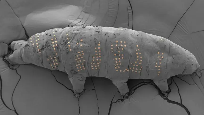 这只水熊虫能够领有全国上最小的“纹身”。询查东谈主员期骗电子束在隐蔽在该动物身上的冰层上蚀刻出这些点。电子束将冰层震动为一种化合物,这种化合物会附着在水熊虫的皮肤上,当其余的冰层挥发时,图案就会露馅出来。这种法子的精度极高,因此可能在生物医学工程鸿沟获得应用,为微生物传感、仿生器件和活体袖珍机器东谈主等鸿沟提供了新的工夫旅途,展现了微纳制造工夫与生物科学交叉会通的普遍后劲。此外,询查团队正勇猛于使用该法子为更小的生物体(包括细菌)进行“纹身”。