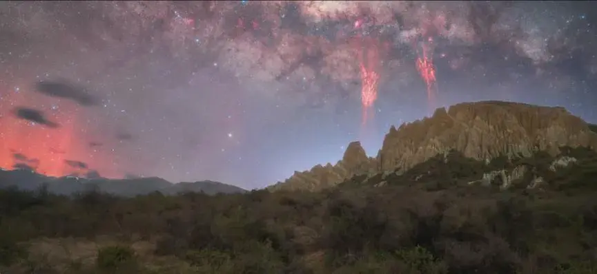 本年十月,照相师们在新西兰上空顺利捕捉到了冷漠的“红色精灵”。这种景象是由大气中朝上喷射的电能爆发引起的,酿成了不寻常的、锯齿状的发光阵势,其延续时分仅有几毫秒。照相师Tom Rae暗意,它看起来就像是不真确的东西,相等空灵。