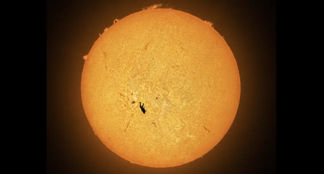 一位跳伞者纵身一跃,以信念为翼,其剪影完好地衬托在太阳名义之上 。配景中可见的暗色太阳黑子,酿成于强磁场不屈了经常会上涌至名义的热量之处。天文照相师Andrew McCarthy和跳伞者Gabriel Brown耗尽了数月时分用心策动和精确主理时机,才用特制的太阳千里镜拍摄到了这一张惶画面。