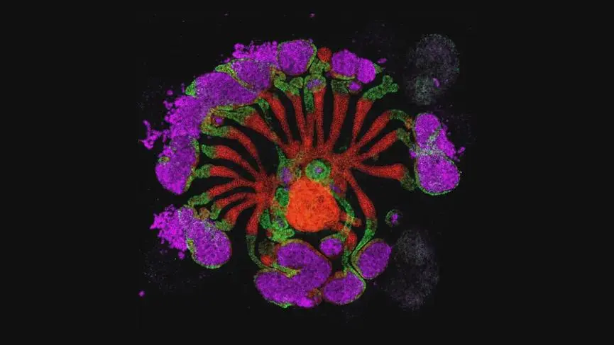 这个在施行室培植出的东谈主类肾脏“类器官拼装体”是向创造东谈主工肾脏迈出的一步。轻细的过滤单位围绕着一个中央引流管酿成,其组织格式与真确的肾脏相似。当移植到小鼠体内时,这些结构能够过滤血液并汲取卵白质。该询查来自南加州大学凯克医学院李中伟团队,于 2025 年 9 月 发表于Cell Stem Cell期刊。