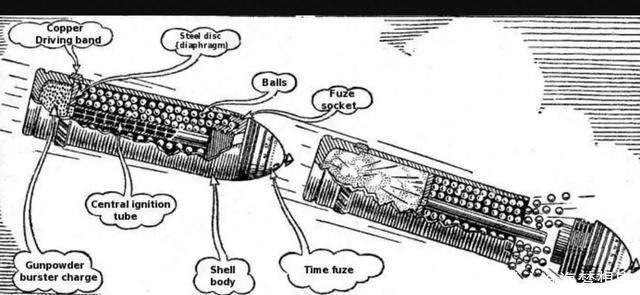 前装青铜炮主导的18世纪末至19世纪中世,野战反东说念主员策略迎来一次颠覆性破损kaiyun体育登录网页入口,英国军官亨利施雷普内尔发明的榴霰弹澈底调动了实心弹丸单点杀伤的局限,成为那时步兵集群的最大逼迫。这种被后世称为施雷普内尔弹的弹药,中枢打算是将铅弹或铁弹封装于球形弹体,劝诱延时引信在标的上空引爆,凭借高速飞散的弹丸收形式杀伤圮绝,其策略价值的开释,高度依赖引信技艺、火炮性能与战场环境的精确协同。