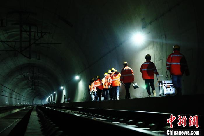图为南铁九江桥工段瑞昌路桥养修工区桥隧工带着器用走向距离地说念口1.7公里的支洞。王浩 摄